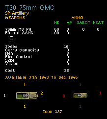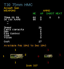 T30 75mm HMCではなく、T30 75mm GMCになっているのは、HEAT弾を積載していて、日本軍の戦車にも使用できたためだと思われます。
