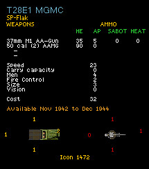 当初、M2ハーフトラックの車体を利用しましたが、M3ハーフトラックに変更し、37mm対空機関砲1門、12.7mm重機関銃2挺を装備し、M2E1照準器を取り付けたT28E1が完成。