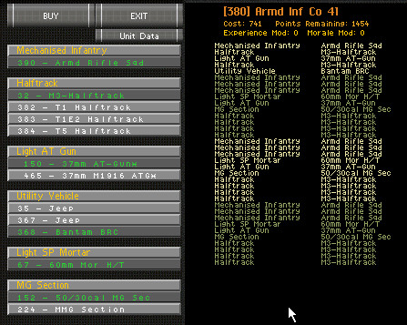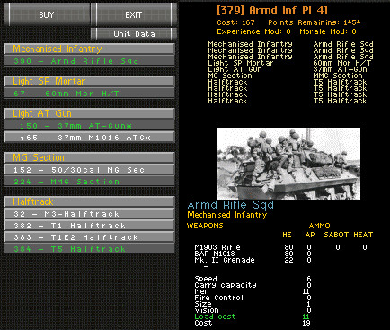 ゲームでは機械化歩兵中隊あるいは機械化歩兵小隊を購入するときのみ登場するユニットで、単独では購入できません。