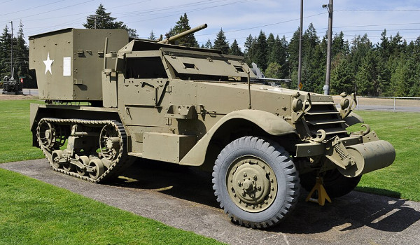 M3A1¥Ï¡¼¥Õ¥È¥é¥Ã¥¯¤Î¼ÖÂΤˡ¢37mmÂжõˤ¤È12.7mm½Åµ¡´Ø½Æ2Ãú¤òÁõÈ÷¤·¤¿¼ÖíÒ¡£